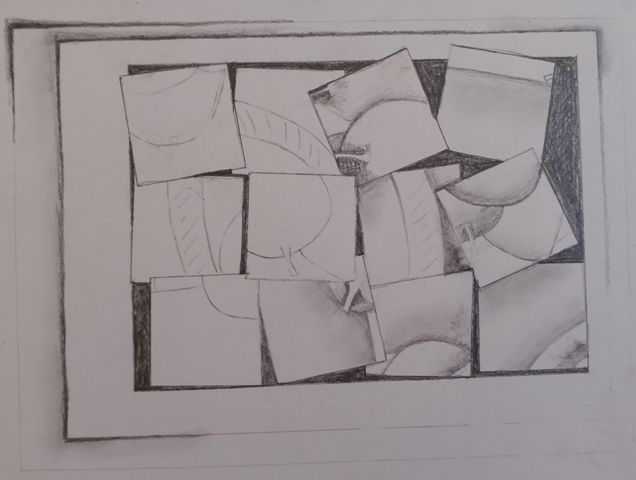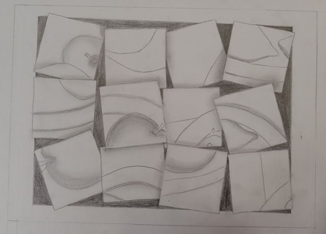 This exercise involved cutting and manipulating the first drawing and doing a new version. This is a very tricky exercise which the students managed really well.