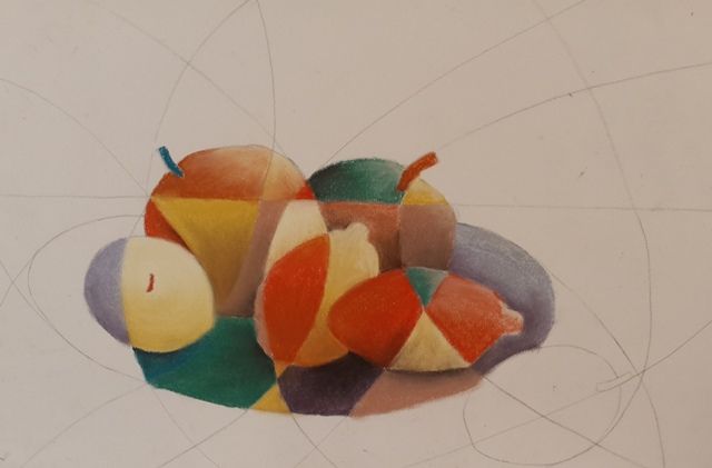 We the then revisited the observation drawing and did a further form of abstraction and this time took the design into colour, using pastels.